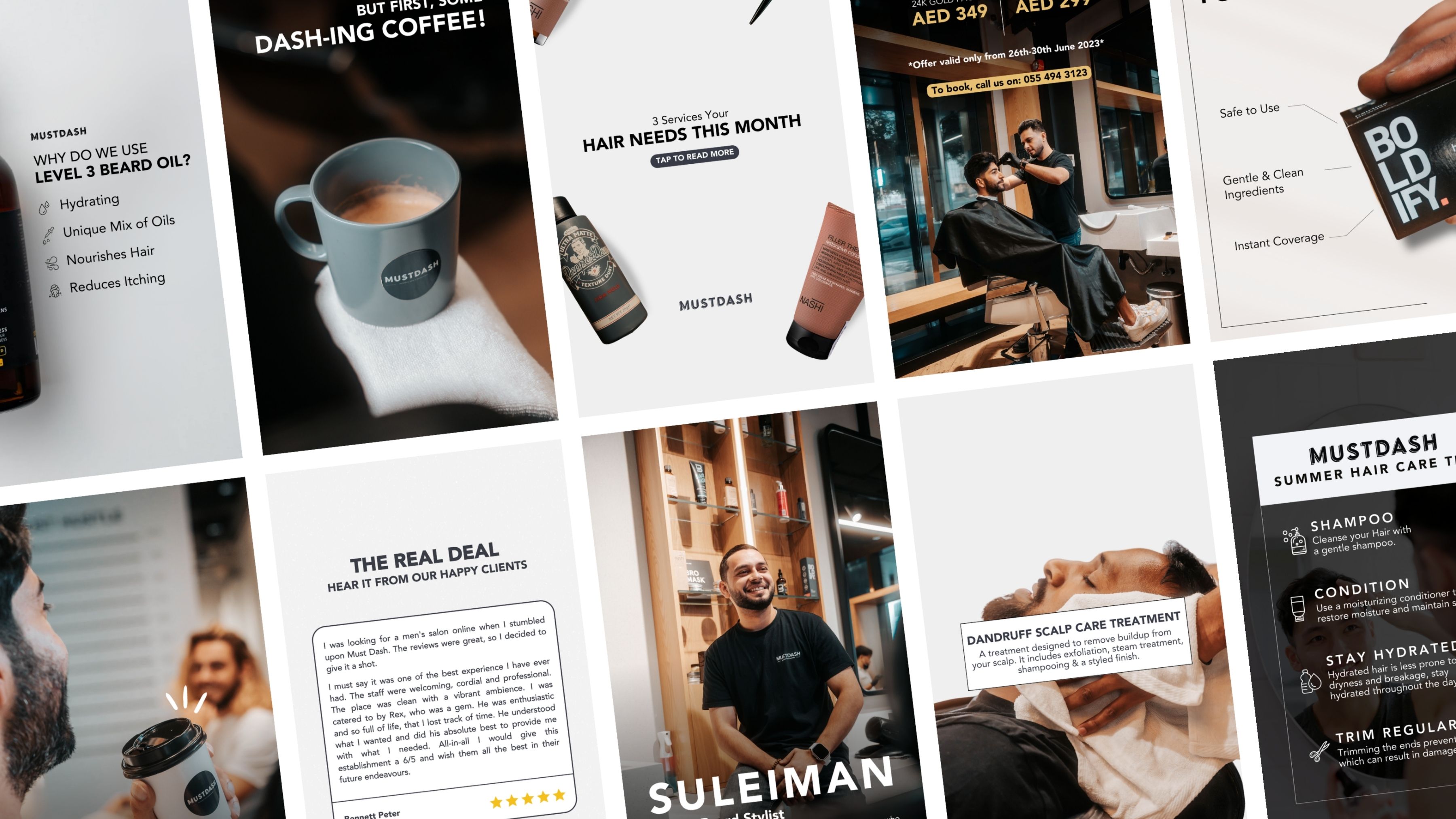 For MustDash, our focus was on redefining the brand’s digital identity through a cohesive and visually elevated content approach. We developed a strong visual direction that gave the feed a more refined and premium look, aligning with the brand’s positioning as a men’s salon. Rather than focusing only on services, we introduced lifestyle driven storytelling that showcased different grooming styles, personalities and experiences within the space.