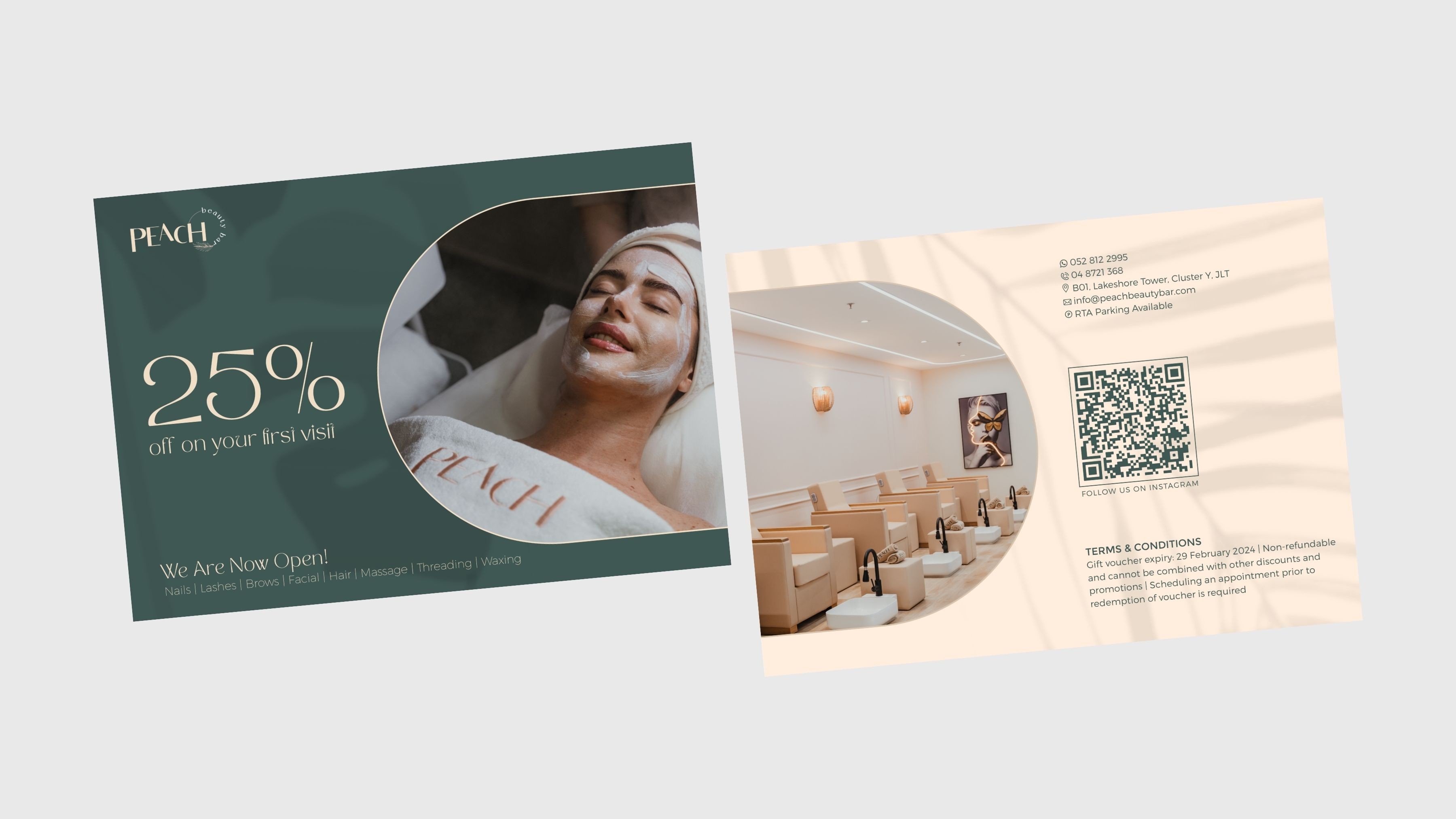In addition to digital content, we supported the brand with collateral design such as business cards, flyers and promotional materials. Through targeted location based campaigns and consistent visual storytelling, we positioned Peach Beauty Bar as a premium and desirable salon within Dubai’s competitive beauty landscape.